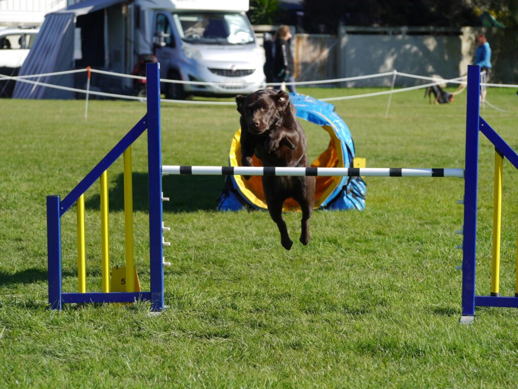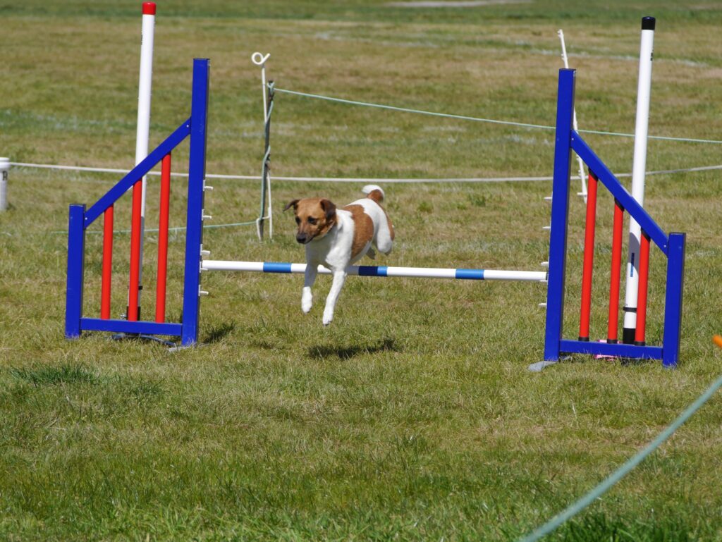 Dog agility is a competitive sport where dogs navigate through a timed obstacle course, which includes jumps, tunnels, weave poles, and other challenges. The goal is for the dog to complete the course as quickly and accurately as possible, guided by their handler’s commands and body language. This sport is open to all breeds and mixes, making it accessible to a wide range of dogs. Your dog must be a minimum of 1 year.